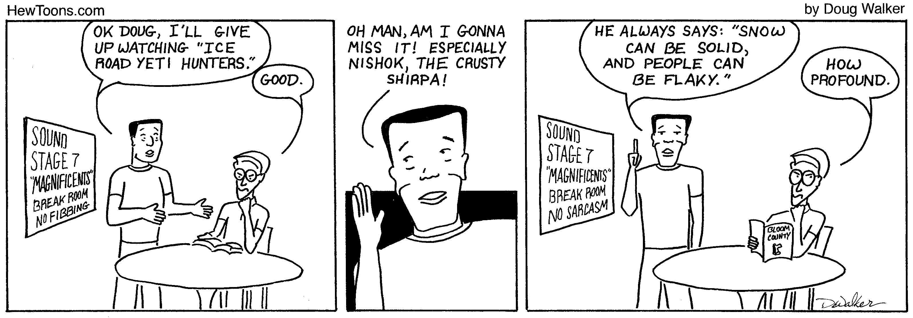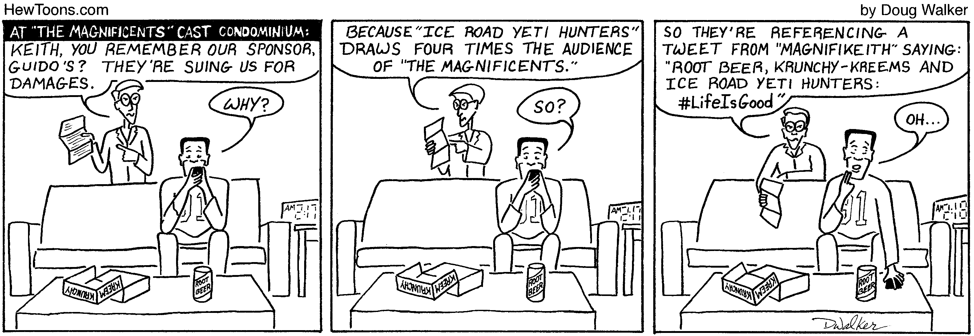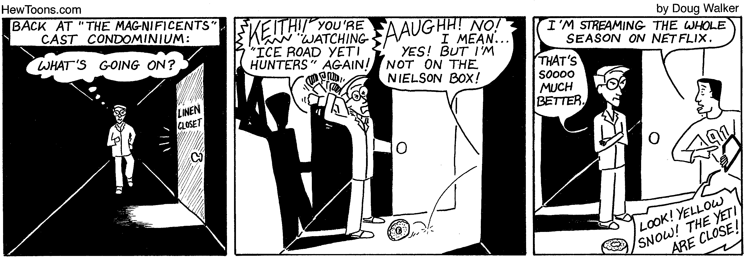 HewToons is the behind-the-scenes story of The Magnificents, a B-Grade cable TV series. Click the image for a larger version. Click the title to view comments. See the About page for a link to the first HewToon strip.