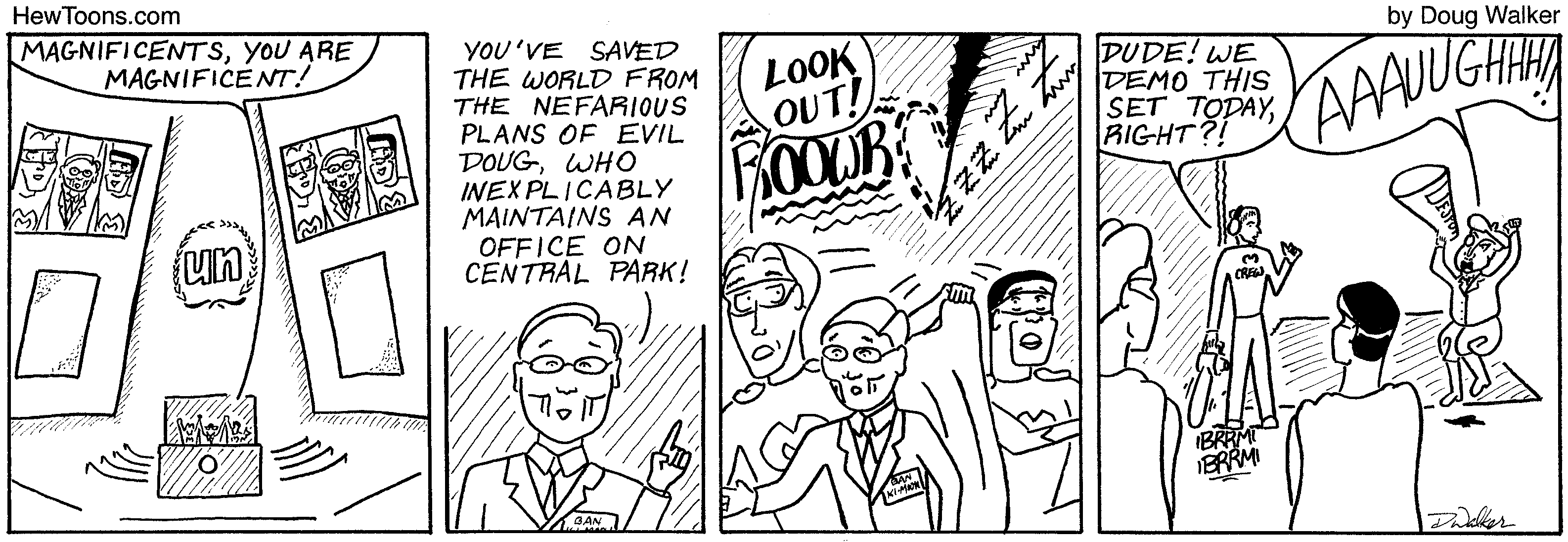 The HewToons Editorial Board would like to thank Ban Ki-moon for appearing as himself in today’s strip. Mr. Ban was able to fill in on short notice when George Takei’s production schedule for Allegiance changed.